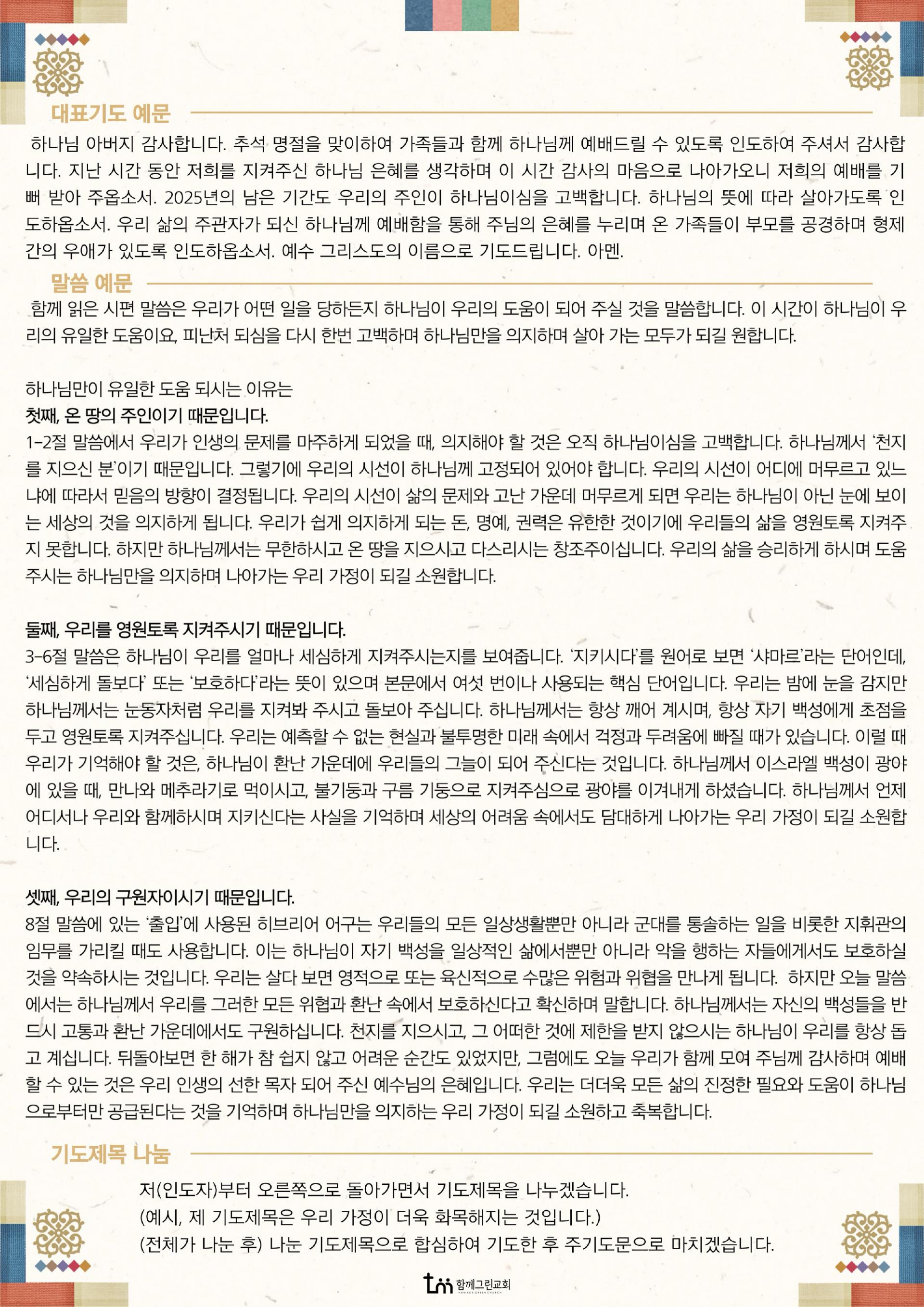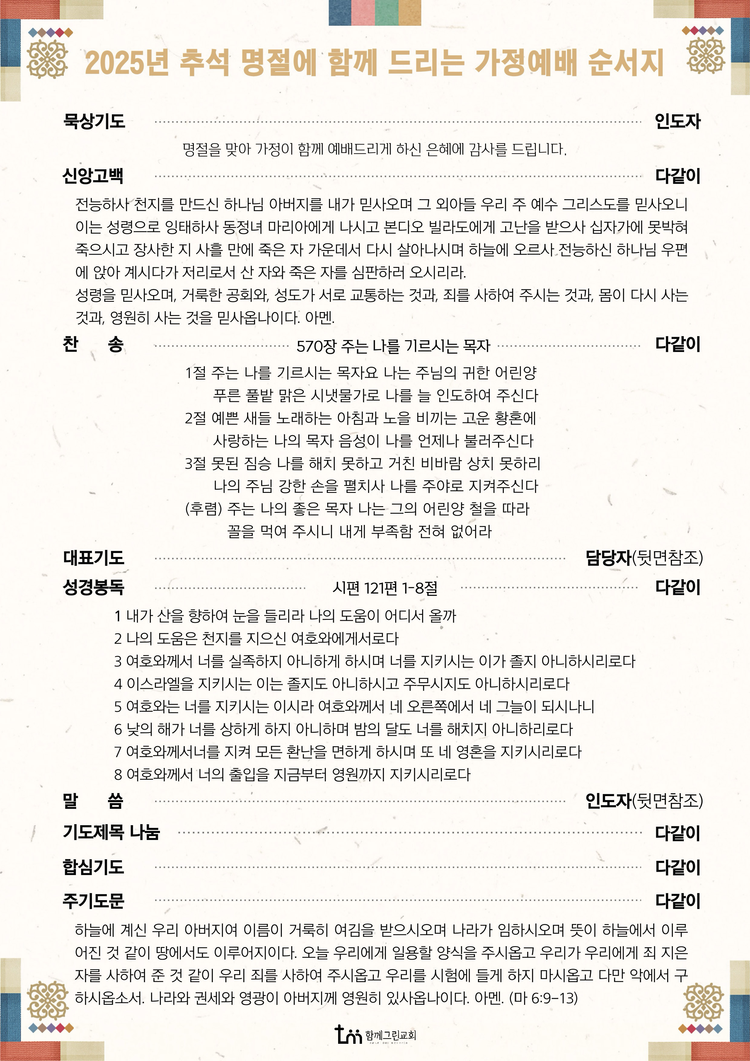 2025년 추석 명절 가정예배지를 안내 드립니다.
