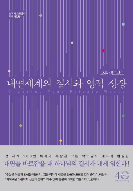 ‘내면세계의 질서’라는 획기적인 문제를 제기하면서 수많은 그리스도인들을 도전하고 변화시킨 책. 쫓겨다니는 삶에 대한 근본적 해결책으로 내면세계의 질서를 강조하는 이 책은 국내에서 1990년 초판을 선보인 이래 40만 부 가량 판매된 스테디셀러다. 이번 확대개정판에서는 78세 일생을 회고하며 좀더 개인적이고 자전적인 내용을 추가해 영적 거장의 내밀한 이야기와 함께 한층 더 깊어진 통찰을 선사한다.